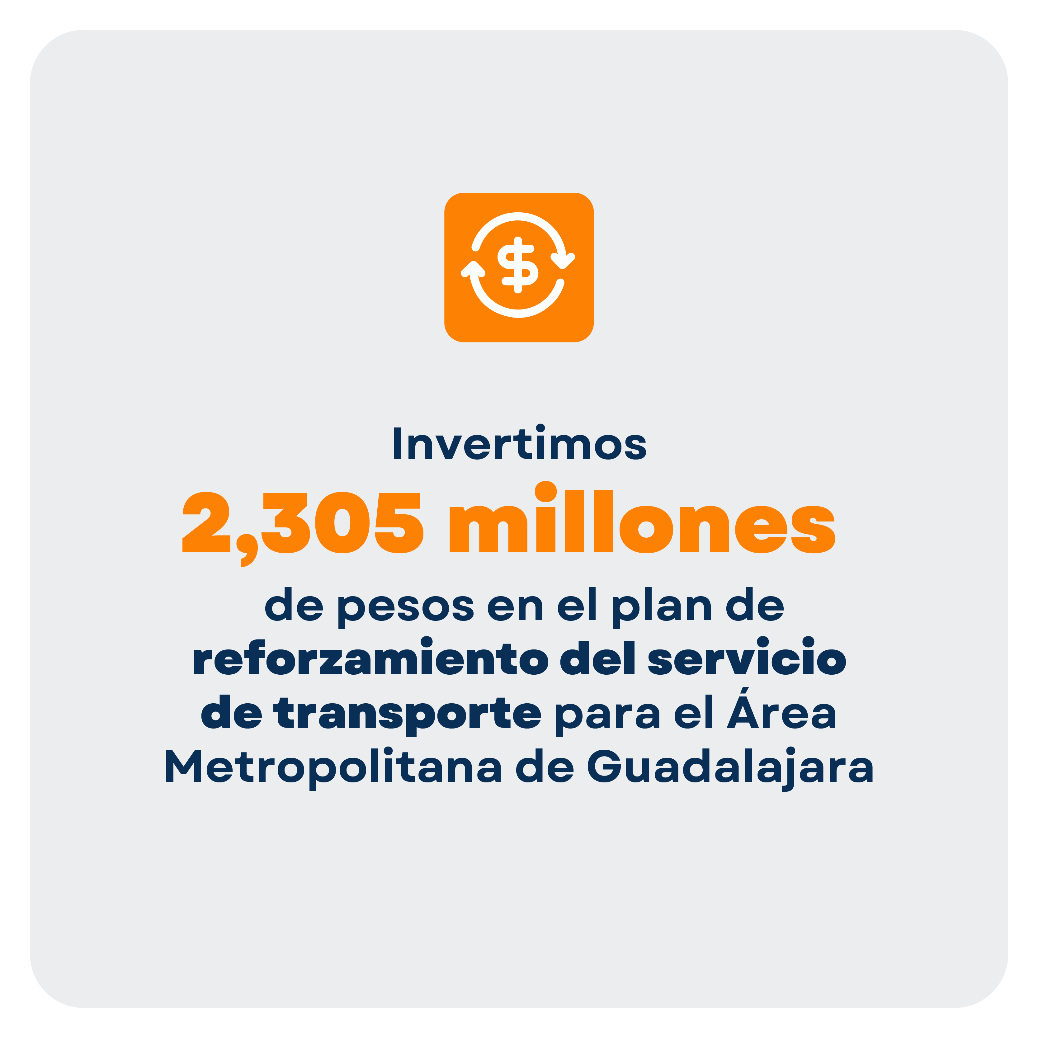 Con este plan de reforzamiento y las más de 2 mil 300 unidades para la AMG y Puerto Vallarta, se beneficiará directamente en total a 849 mil usuarios al día.